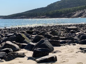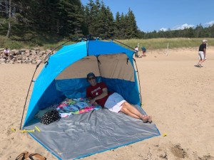 When we were cycling on Wednesday through Acadia National Park, E spied a beautiful beach. We headed there on Friday for a little down time. Here are a few pics, along with one of our cool L.L. Bean beach hut: