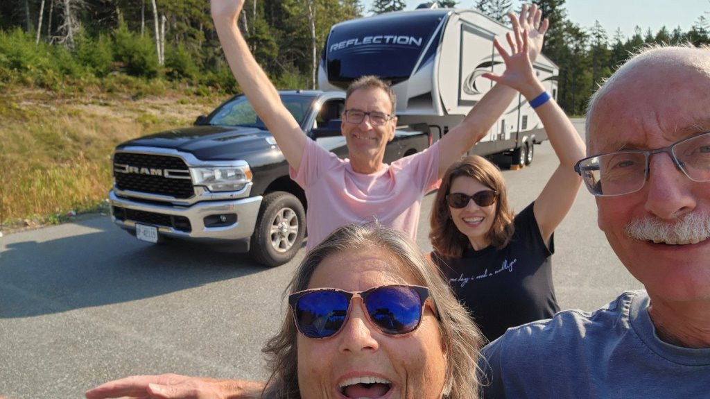 Bonus content: Jeff, a prof at UNB, had kindly arranged for us to leave the RV at the university while we spent the night in their home. We planned to meet Jeff in the university parking lot. Unfortunately, we missed the last turn and headed toward the hospital instead. Little did we know, but Jeff was driving behind us, vigorously trying to wave us down. As we approached the hospital–with the road getting narrower and with fewer exit options–I noted that the ER door overhang did not look high enough for us to pull through. E spied a curve in the road behind a concrete abutment, and was quite confident that it would provide an exit back to the main road. As we pulled forward, we quickly saw this curve in the road went nowhere, except to the garage door for underground parking. Somehow, E managed to pull us out of a tight spot (with good advice from Jeff), but we provided much amusement for all the patients and visitors sitting outside enjoying the day. To add to our ‘lessons learned’: If you don’t know what’s just around the corner, stop driving.