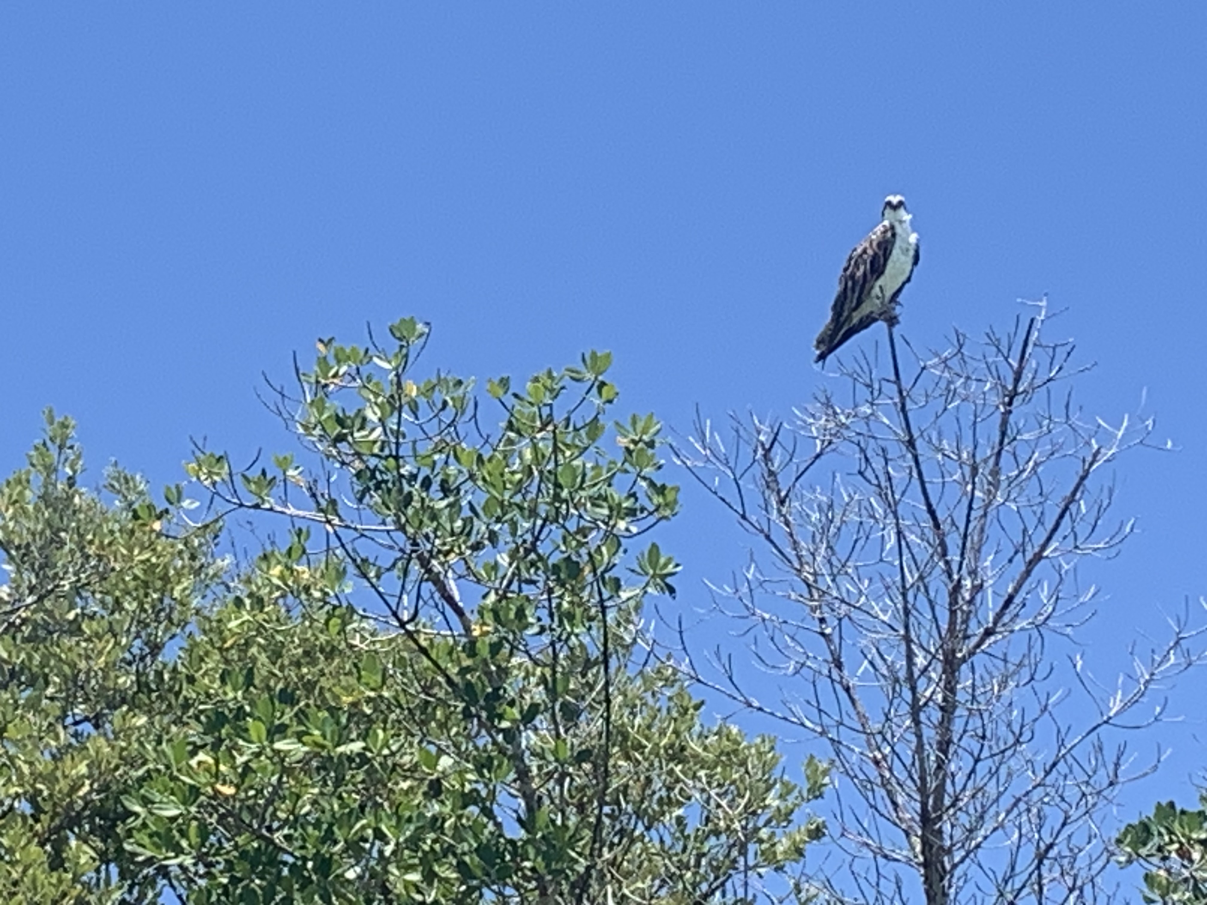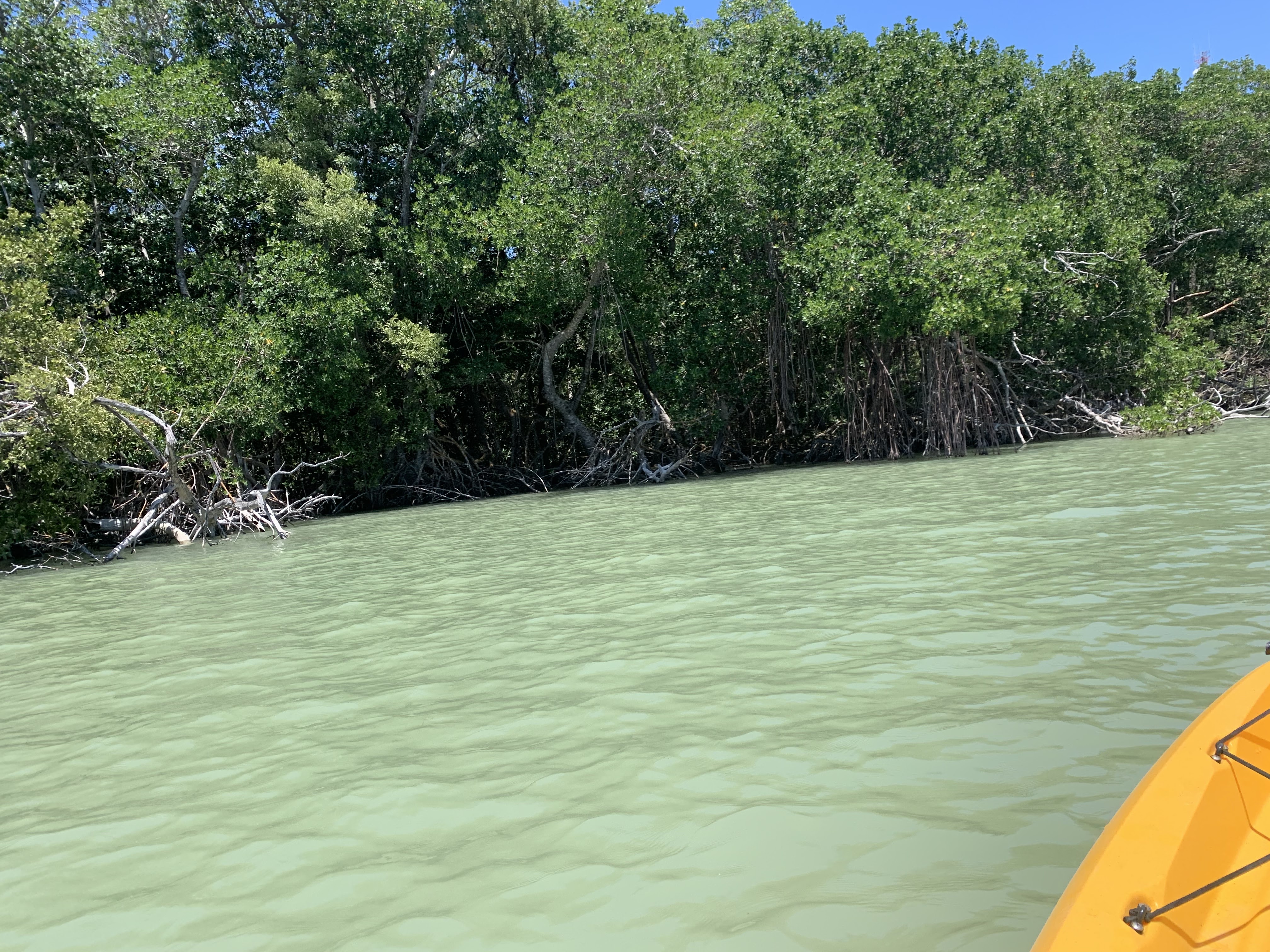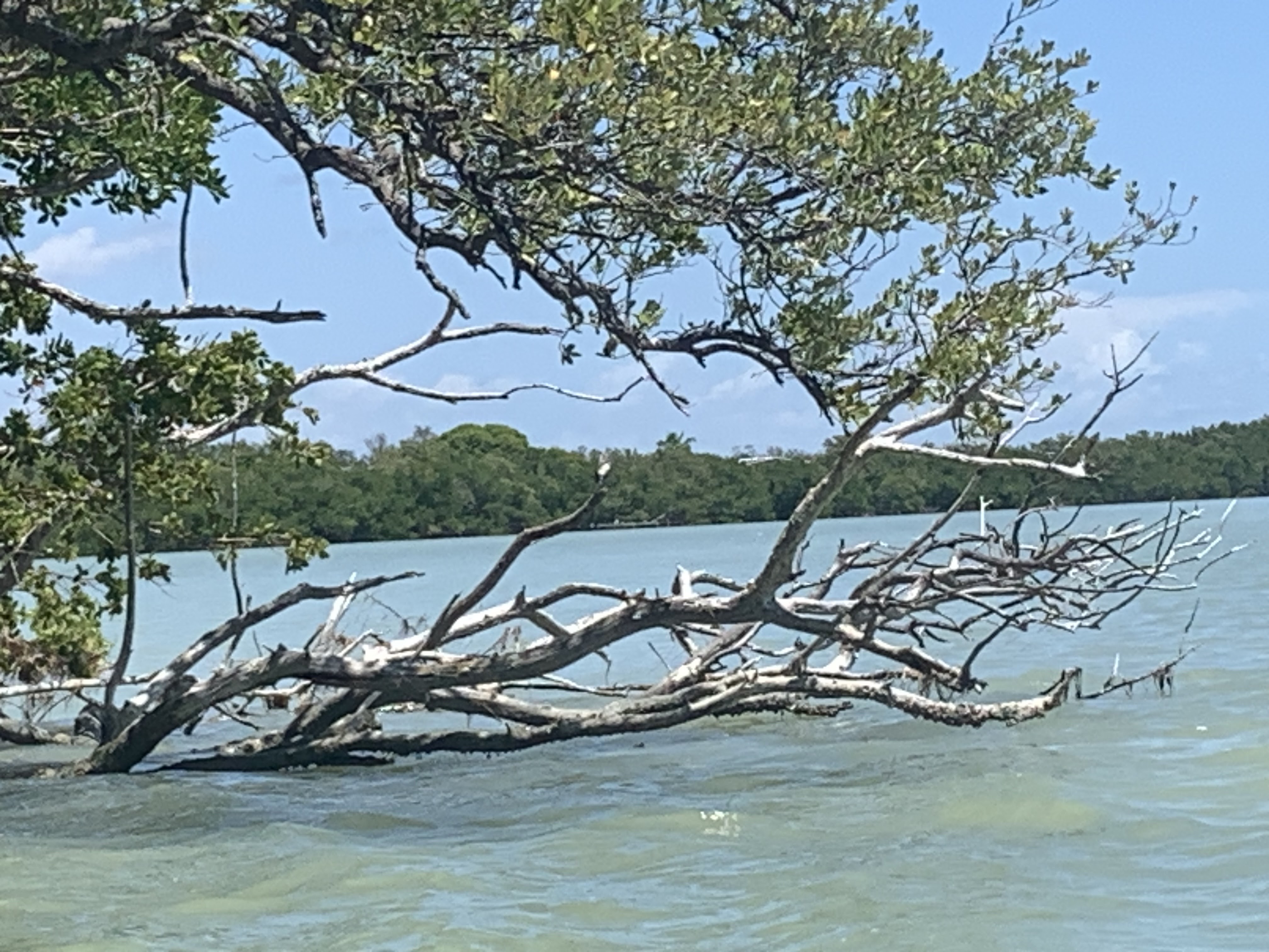 This day Di is going to go for a bike ride and I am going to go to the other camping park about 30 miles away and rent a kayak. There are two routes to kayak…one out to the bay and the other down a channel. I opt for the bay based on a conversation with someone at the rental office. It was great, lots of birds, mangroves along the coast and a nearby island with some fish jumping offshore. I start to paddle back and see movement in the water close to the main shore. I am not sure what it is…looks maybe eel like or really big snake lor maybe a manatee. I try to get pictures and keep a little distance but the kayak isn’t cooperating. I paddle back to the dock and as I am getting out a ranger comes over and says “was that a shark you were looking at?” SHARK!!??? 😯I don’t let my inner voice out and calmly say “no, just a manatee” which I am quite sure it was but the thought he put in my head did have a shock value 😁