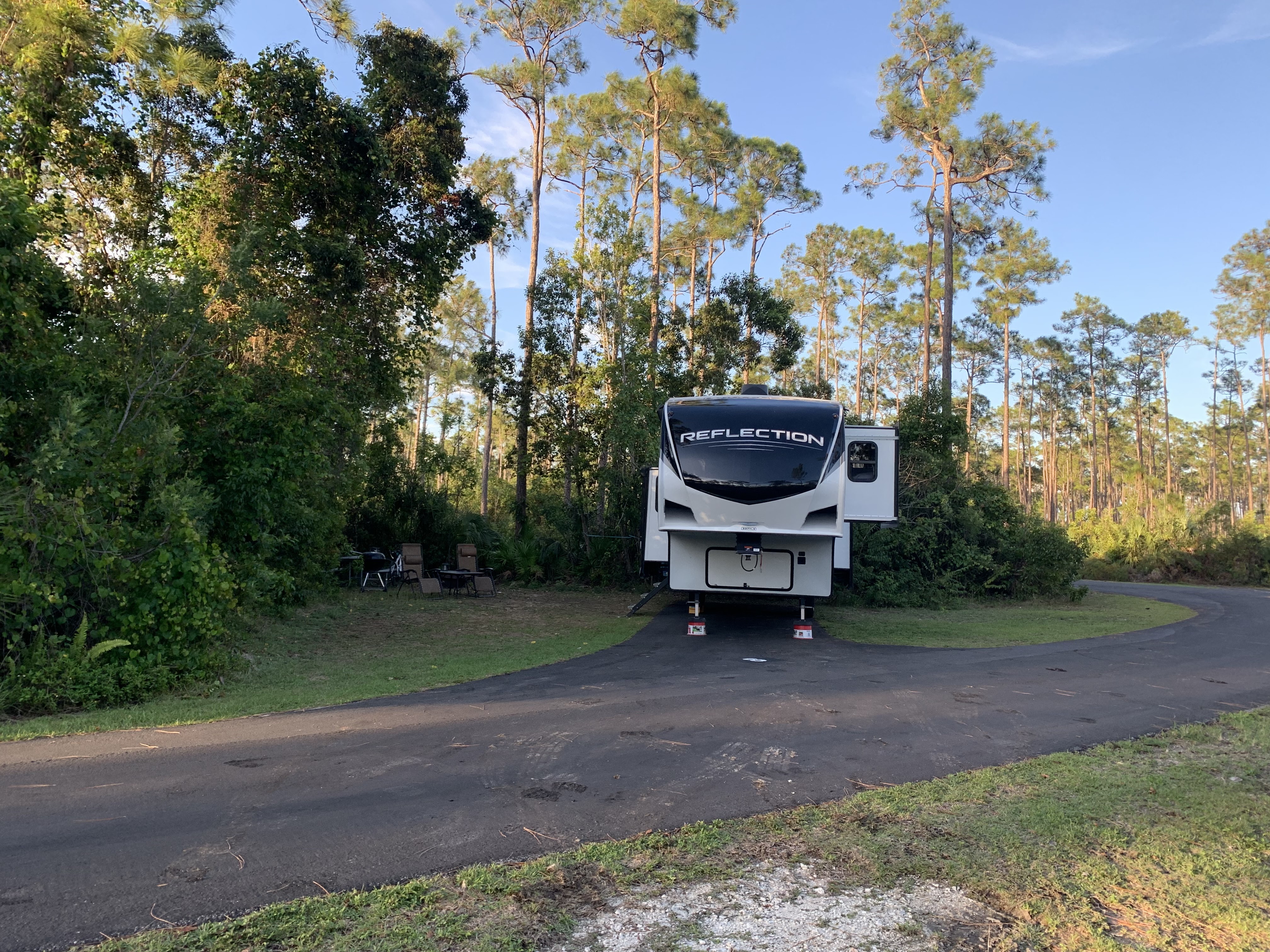 Where to begin….it was an adventurous, beautiful and challenging time. First off we had an uneventful drive from Titusville to the Everglades National Park and our site at Long Pine Key Park. This is our first attempt at boondocking…no hookups…water, sewer or electric. We pulled in to the park and went to the pump/fill station to fill the fresh water tank and then on to our site. This is a very nice park with large sites, lots of privacy and vegetation around. On top of that there were hardly any other folks here, we had no one else on our row the entire time we stayed.