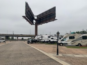 In terms of the site itself, this one was a little different than those nicely wooded lots we’ve had on this trip. Oh well, it may not be picturesque, but the location relative to where we spent our time was perfect.